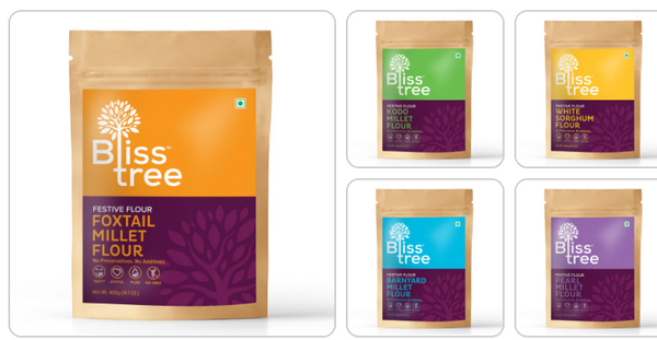 Package contains 12 packs total - 1 x 400g Barnyard Millet Flour, 1 x 400g Foxtail Millet Flour, 1 x 400g Kodo Millet Flour, 1 x 400g Pearl Millet...
